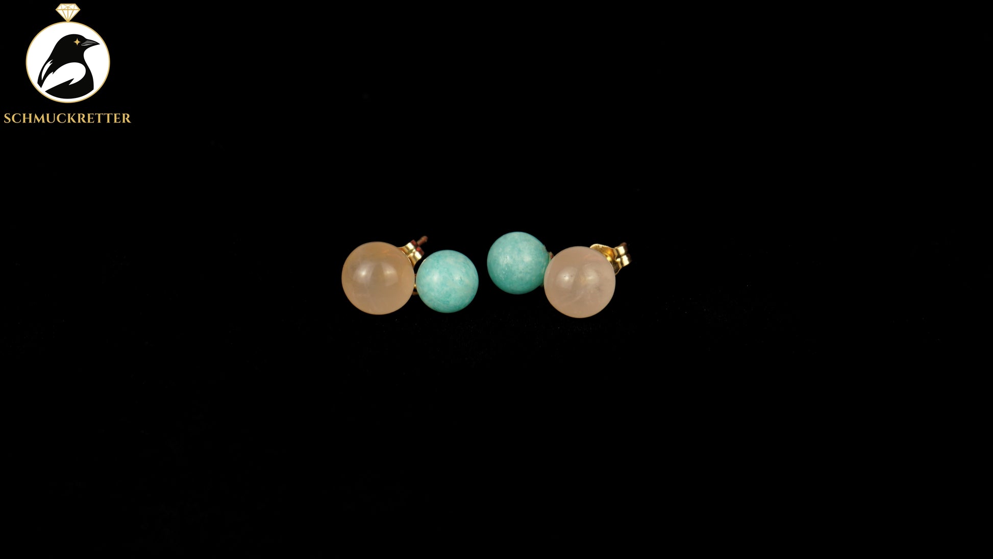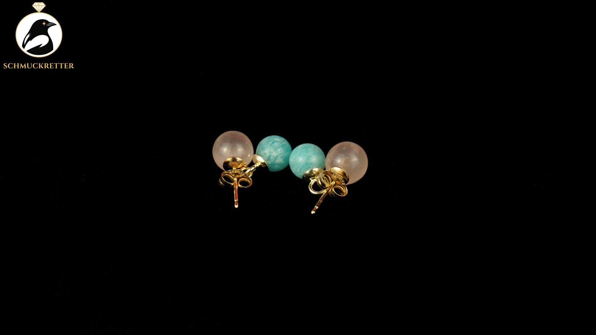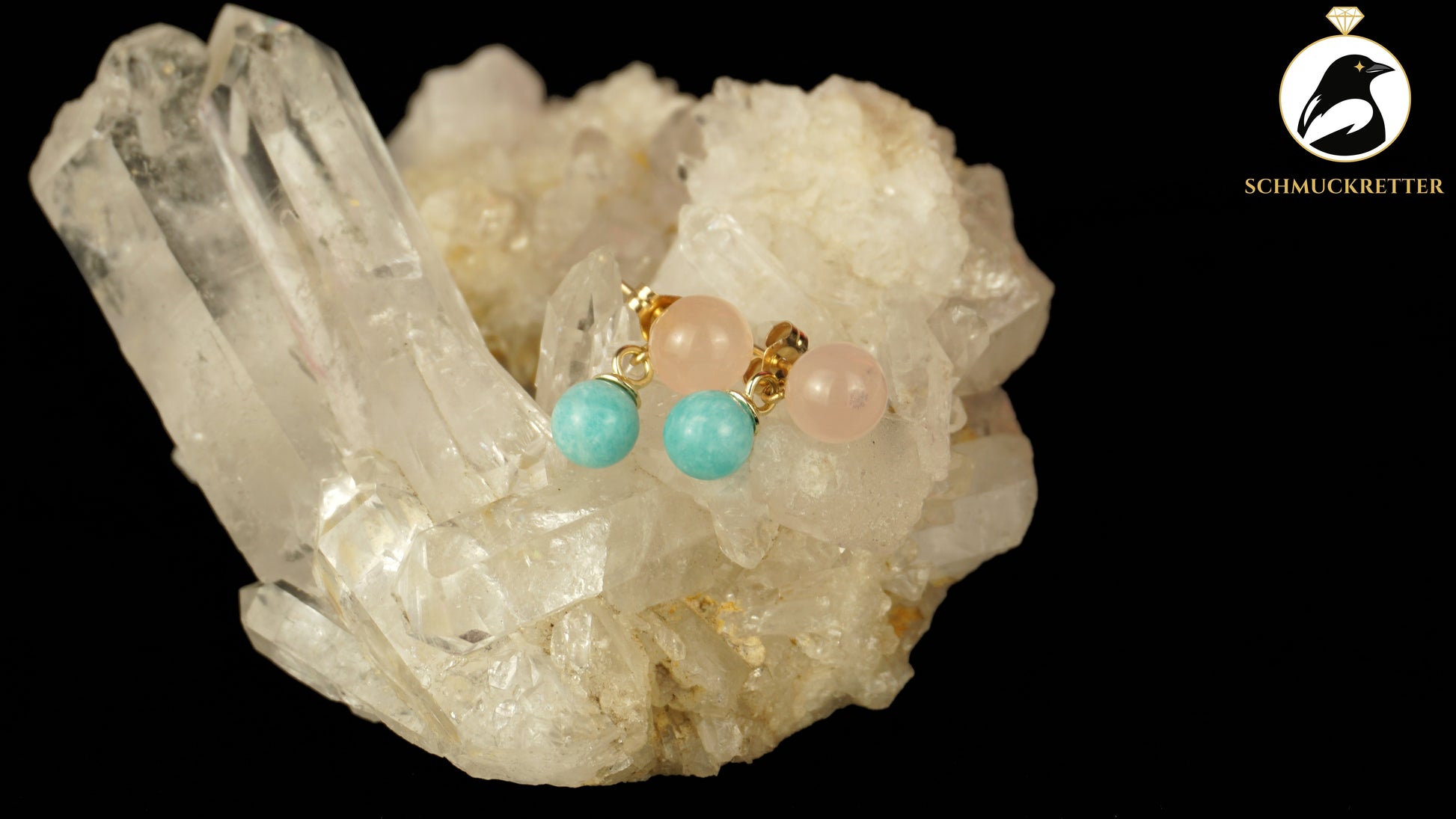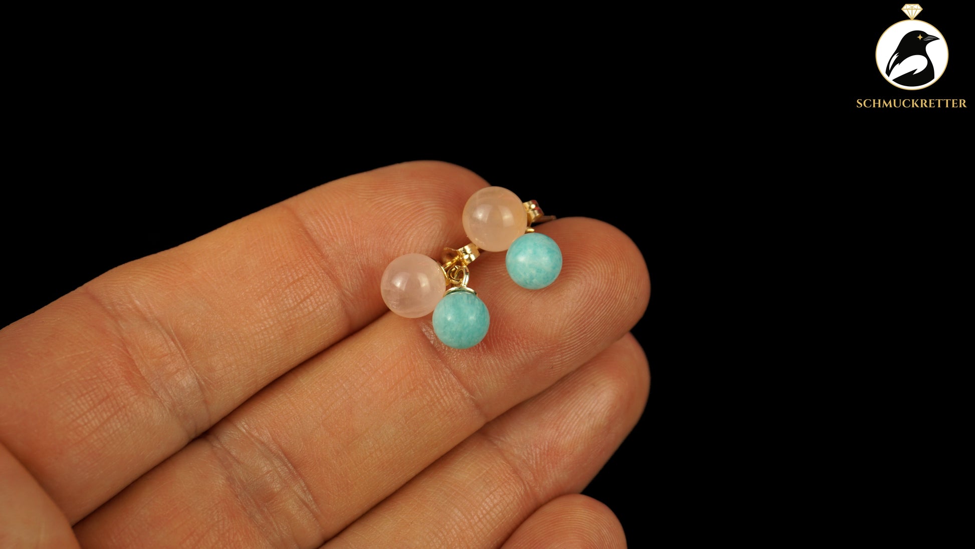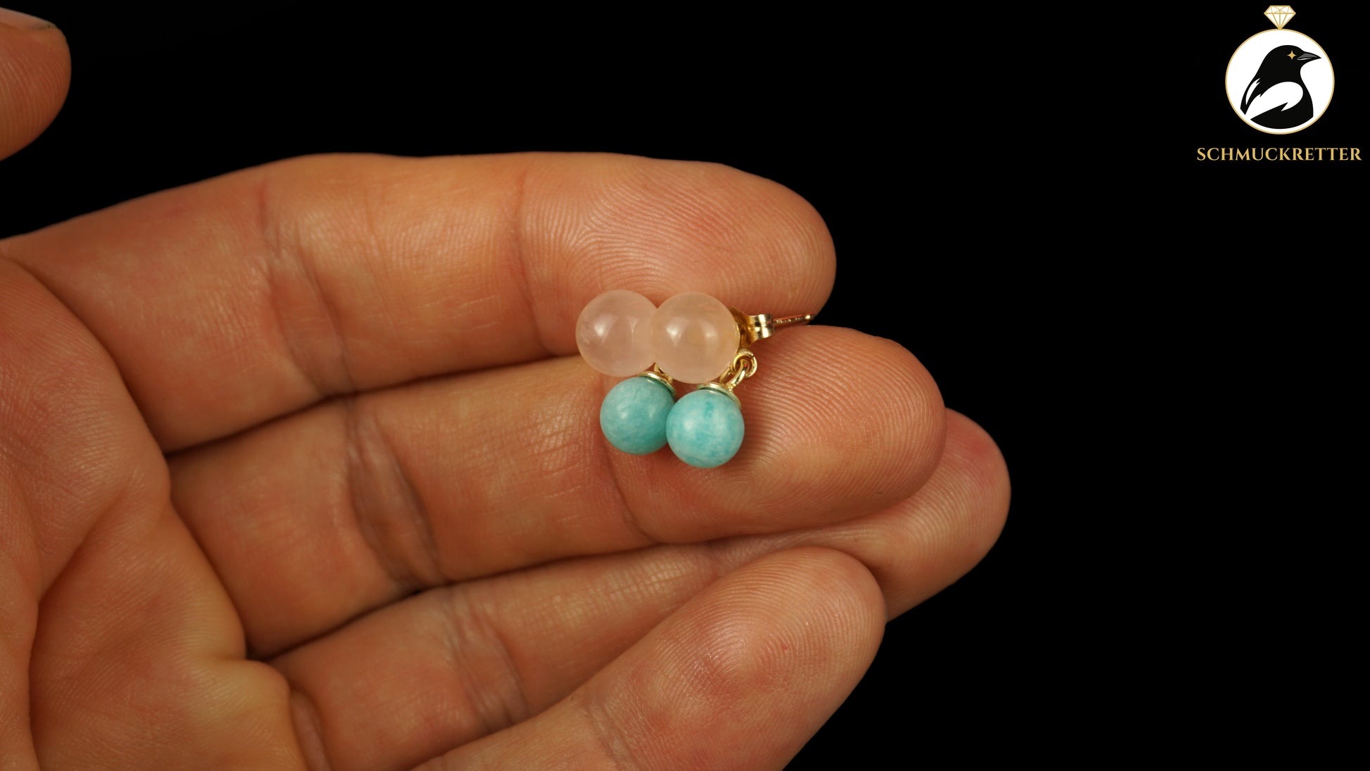 585 Gold Ohrringe mit Amazonit & Rosenquarz