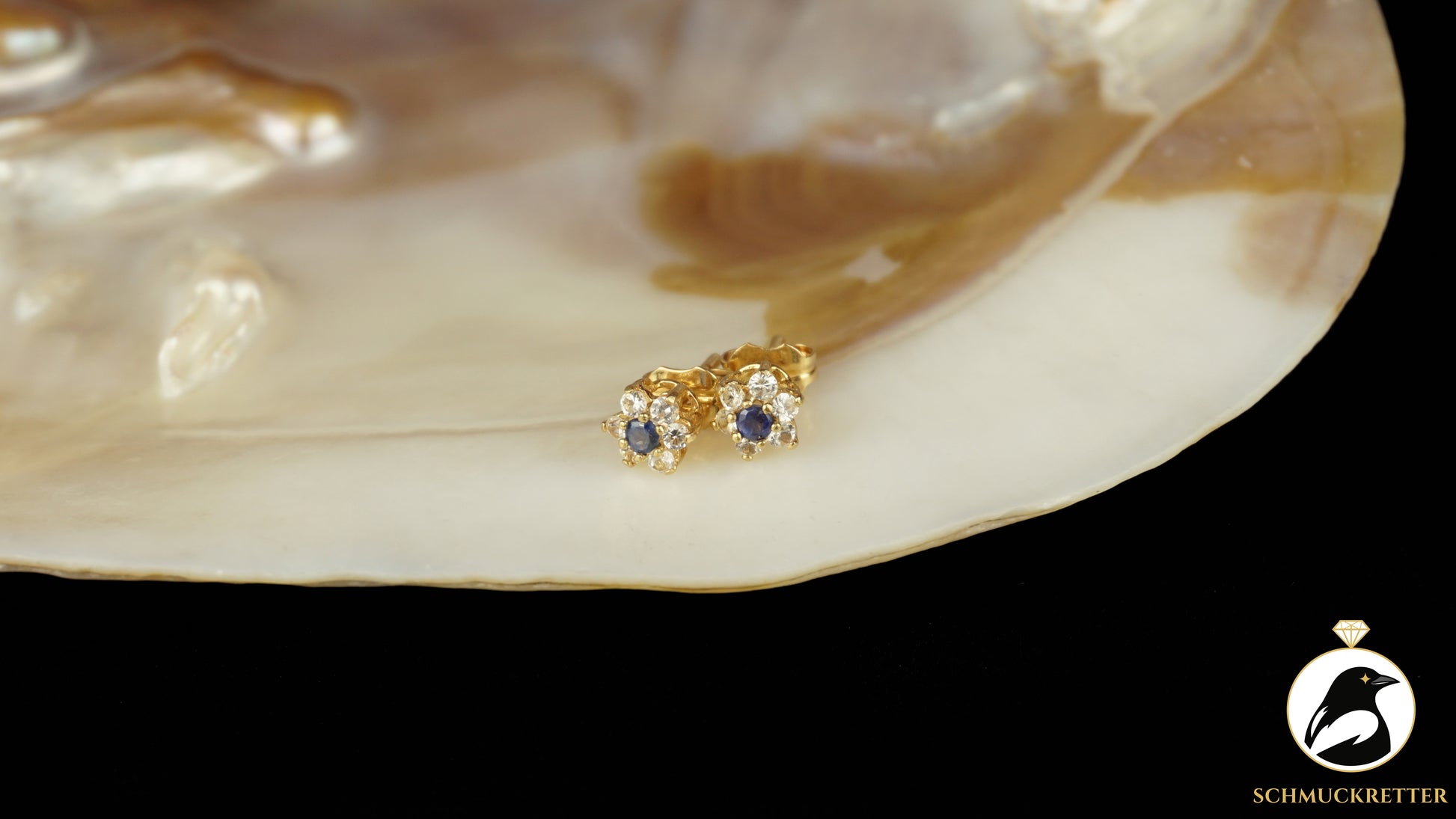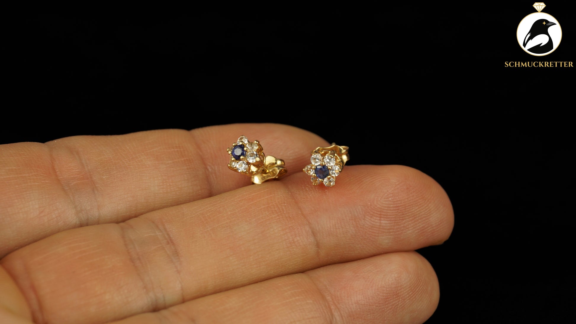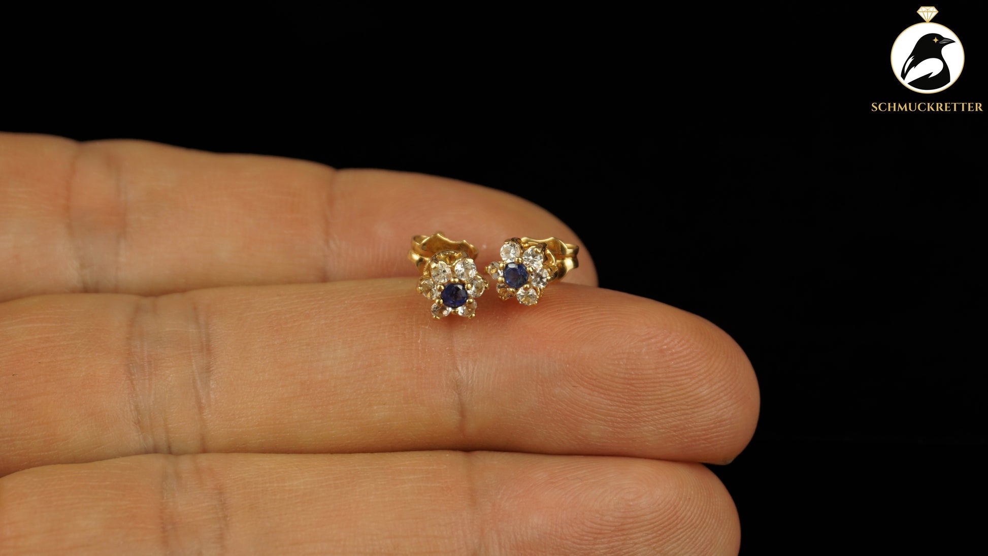 750 Gold Ohrstecker mit Saphir & weißem Topas