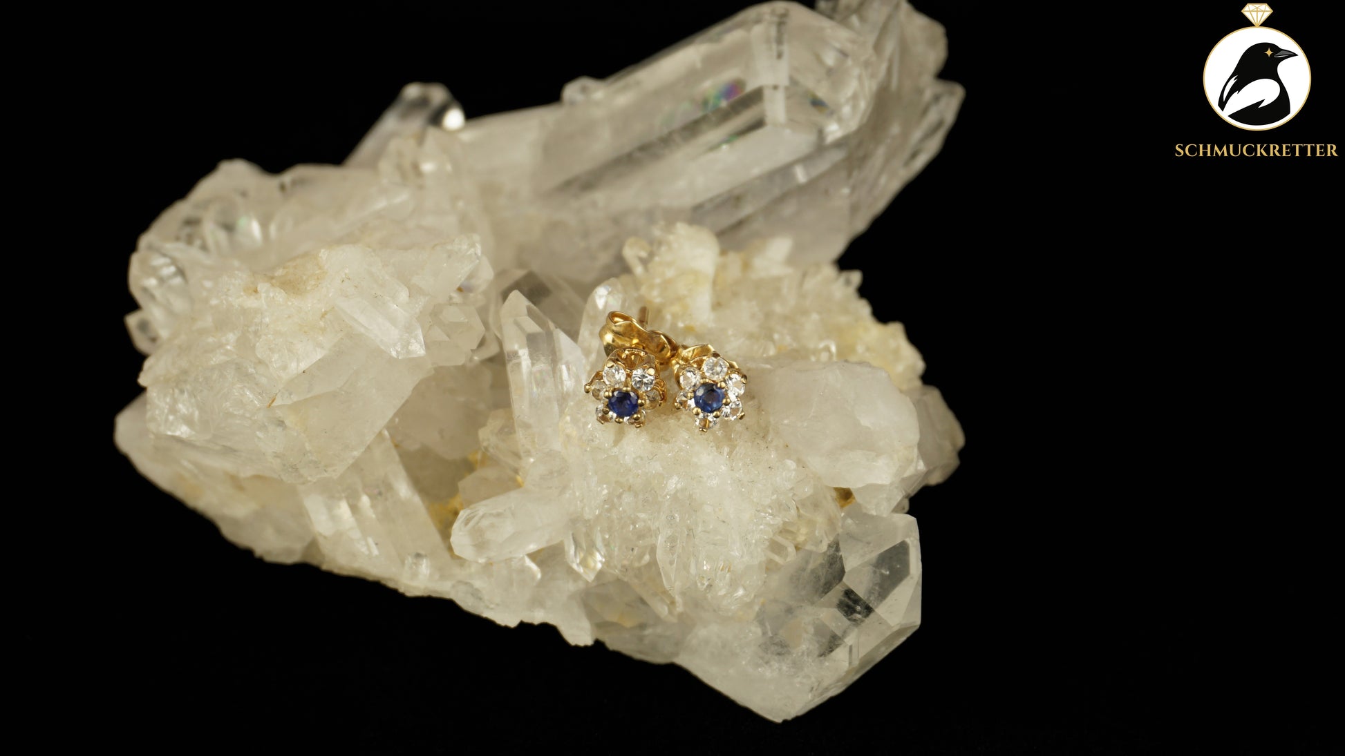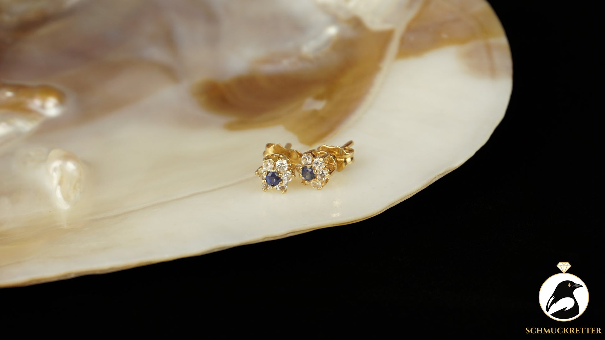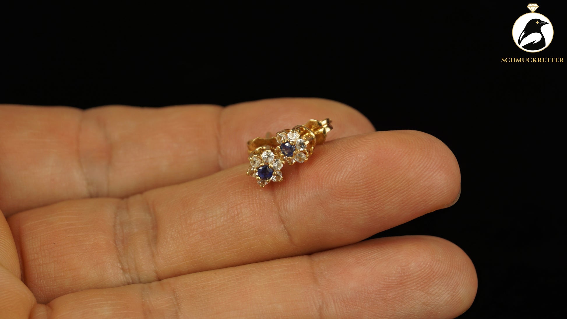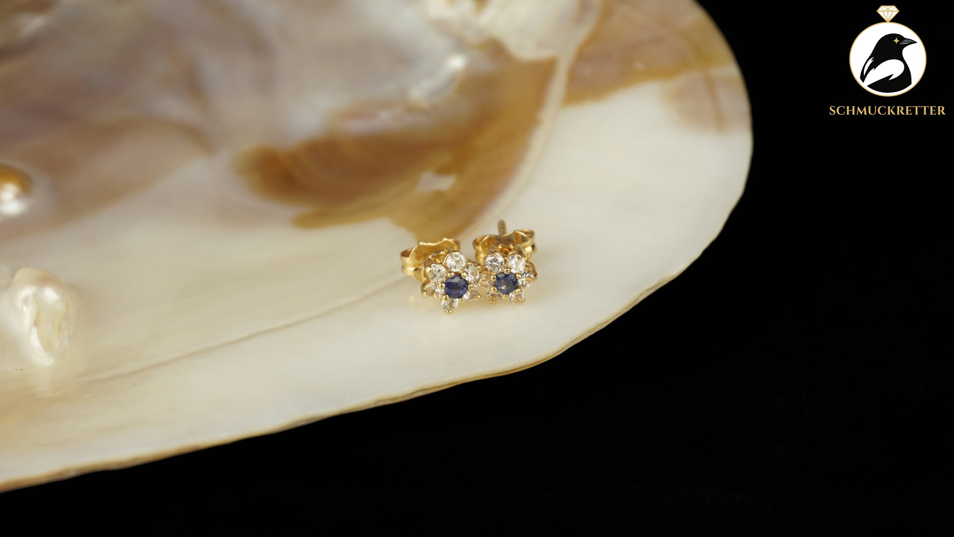 750 Gold Ohrstecker mit Saphir & weißem Topas