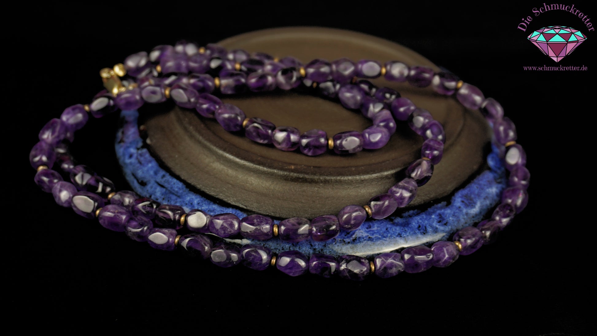 Amethystkette mit vergoldeten 925 Silber Scheiben und Verschluss, 53,5cm