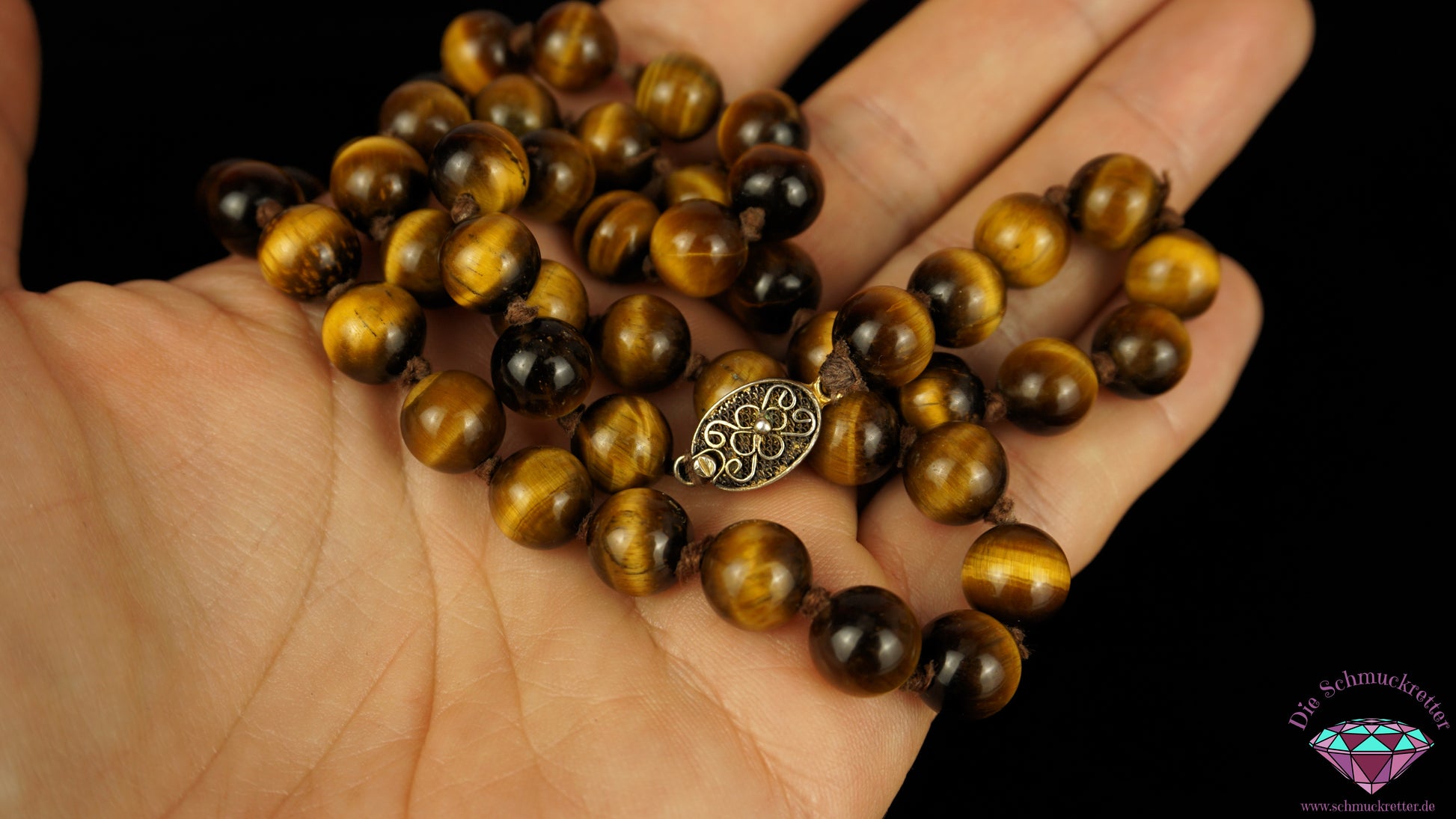 Chinesische Tigeraugenkette mit Echtsilber Verschluss