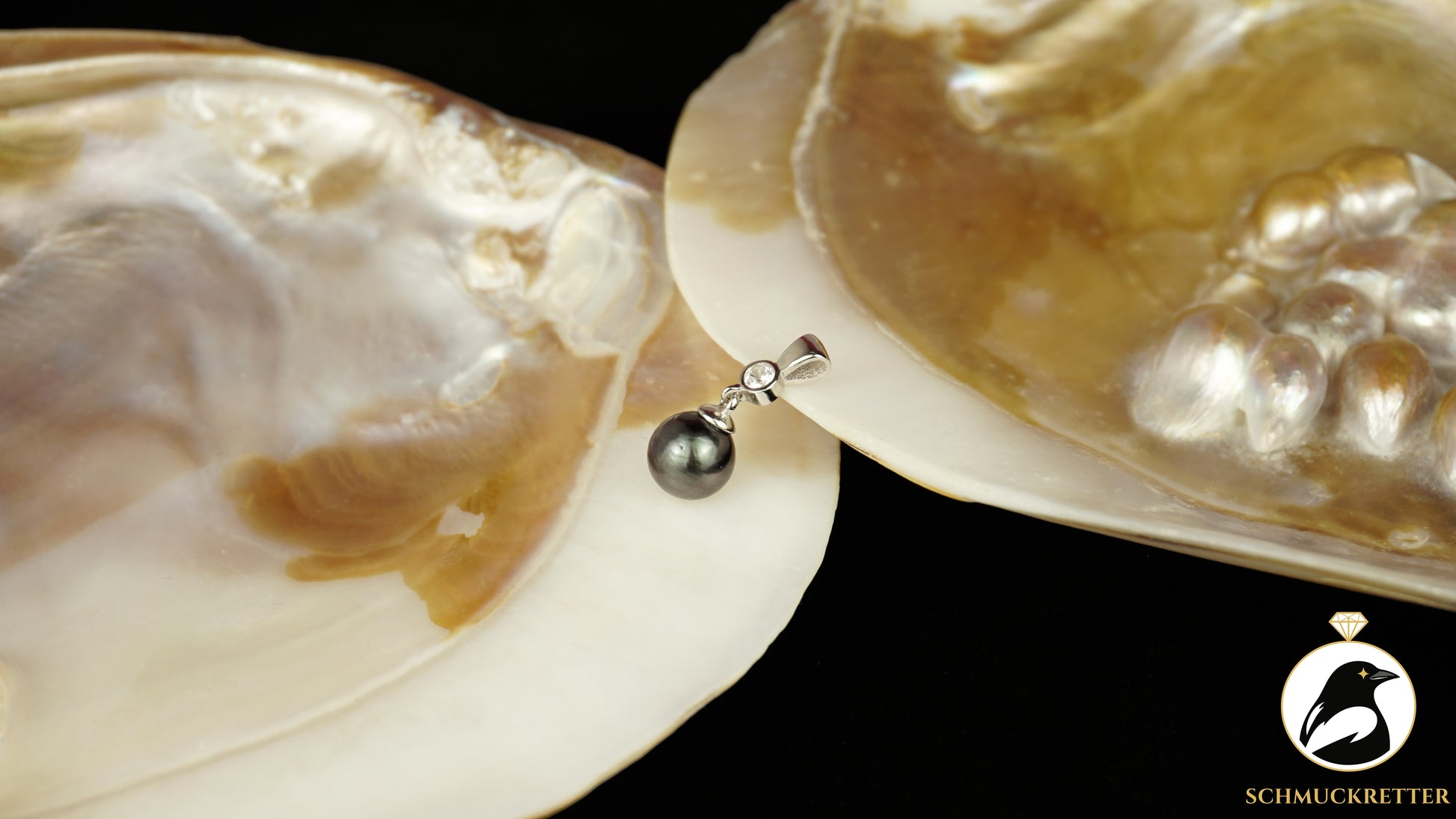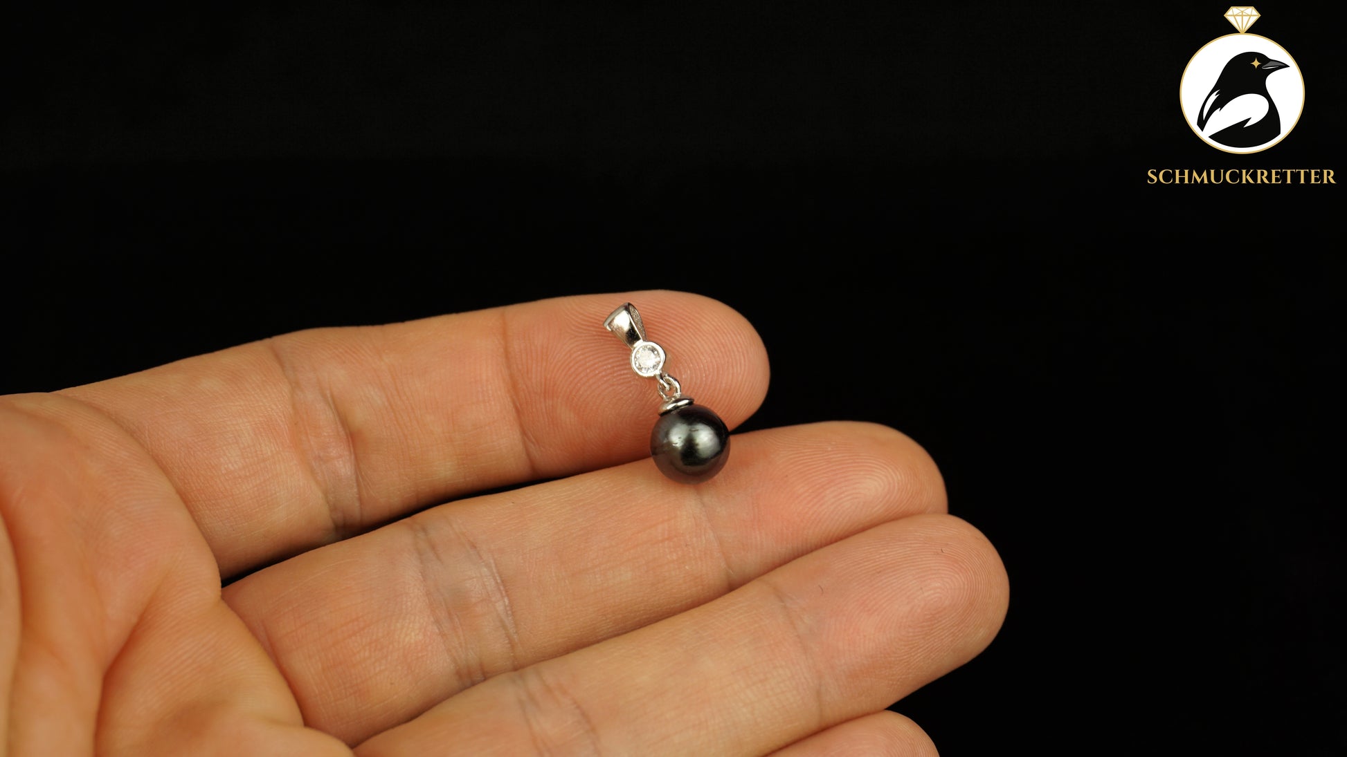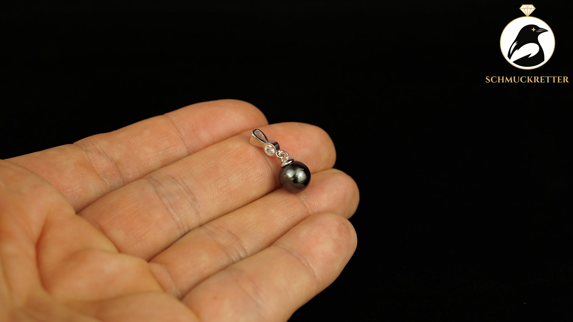 Dunkler Perlenglanz und feines Funkeln – dieser Anhänger wirkt wie ein Hauch von Luxus und erinnert an ein Schmuckstück aus Weißgold. Elegant, klar und zeitlos schön.