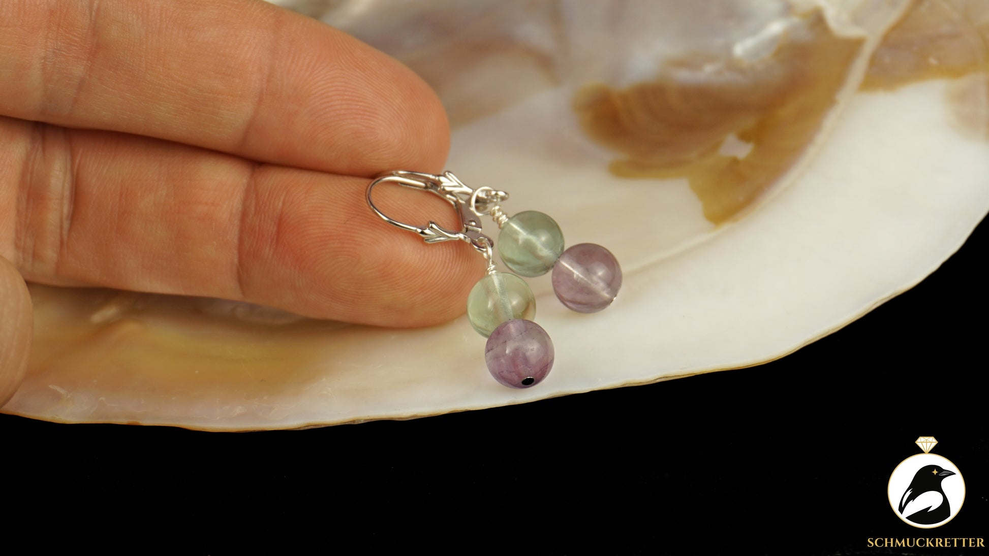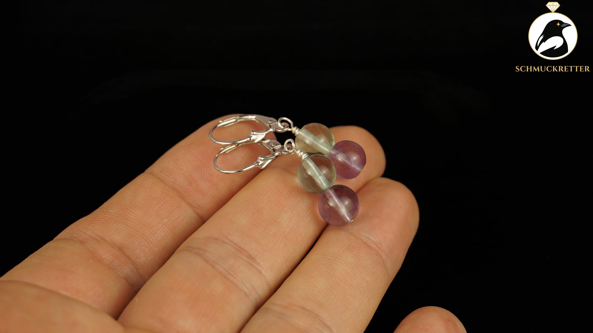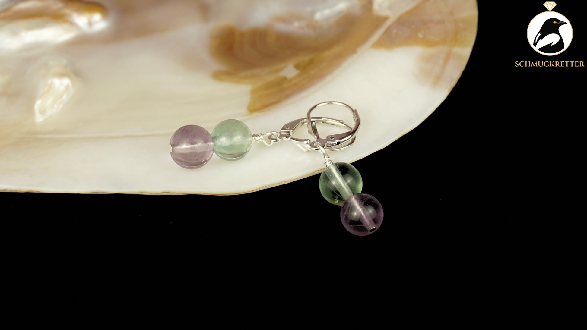 Fluorit Ohrringe aus 925 Silber, zweifarbig