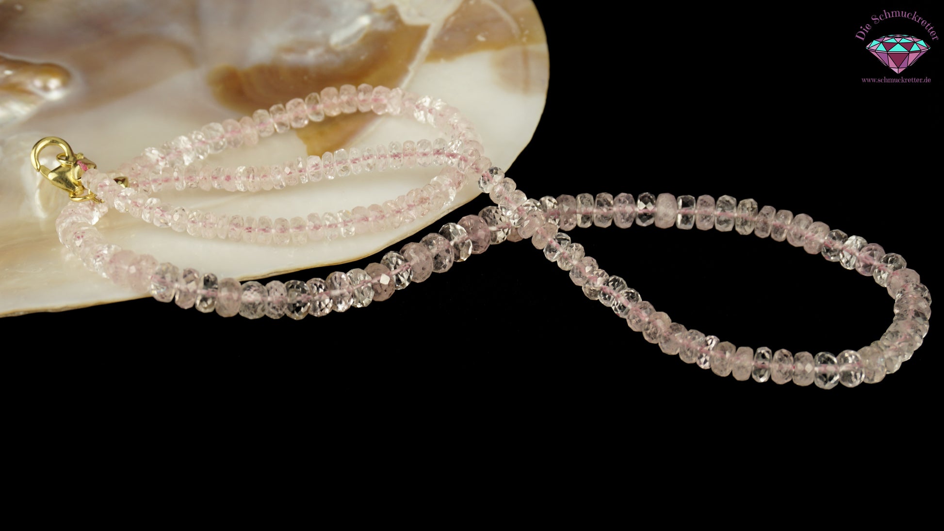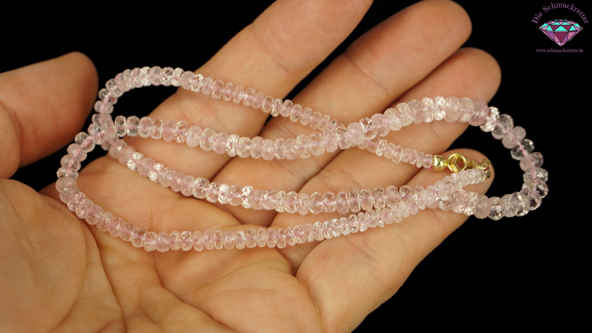 Halskette aus pinkem Morganit mit 375 Gold Verschluss, circa 75ct