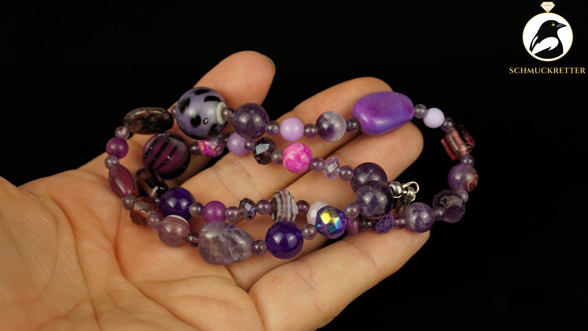 Kette Fliederzauber - Amethyst, Achat, Glasperlen & 925 Silber Verschluss