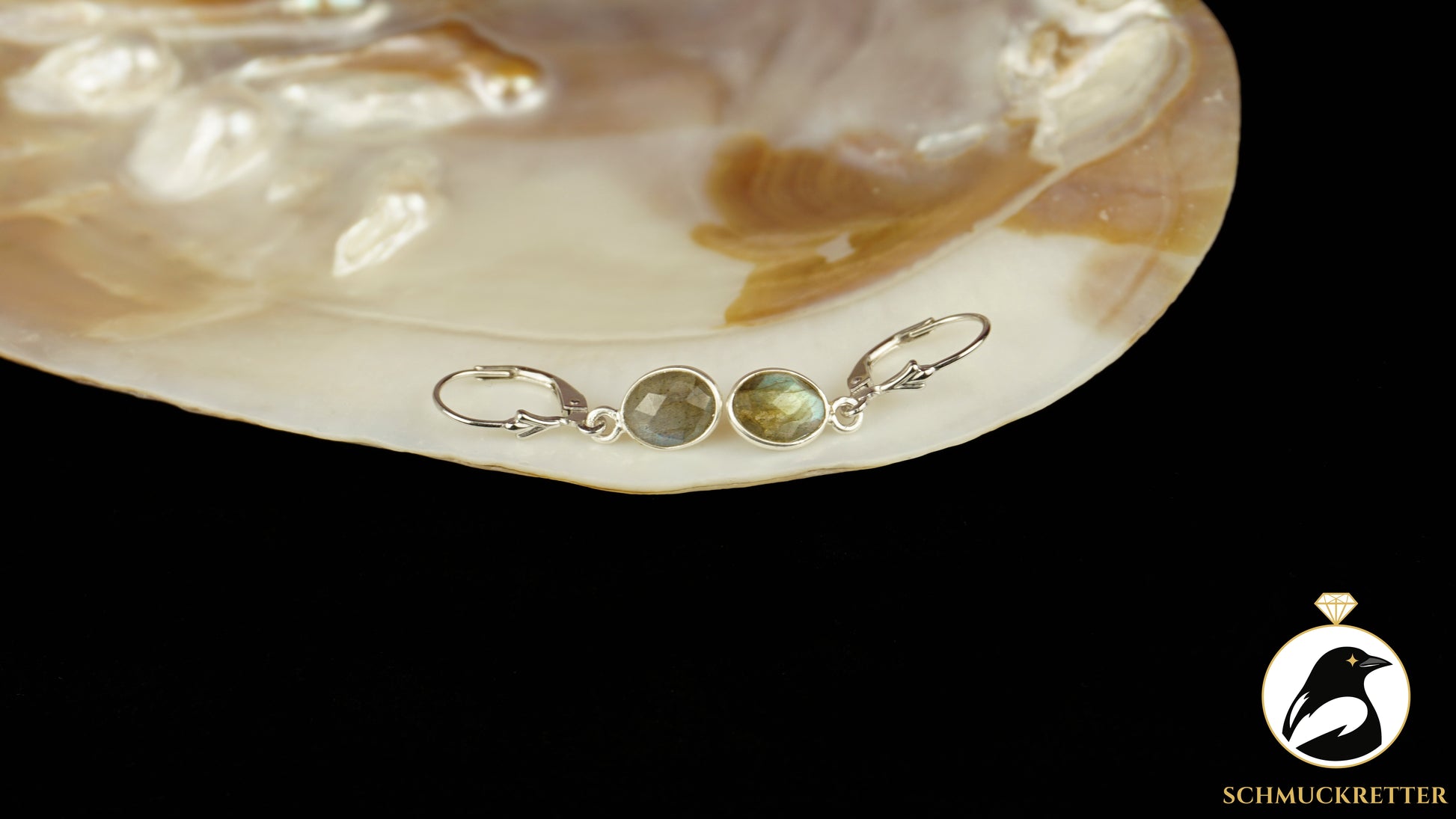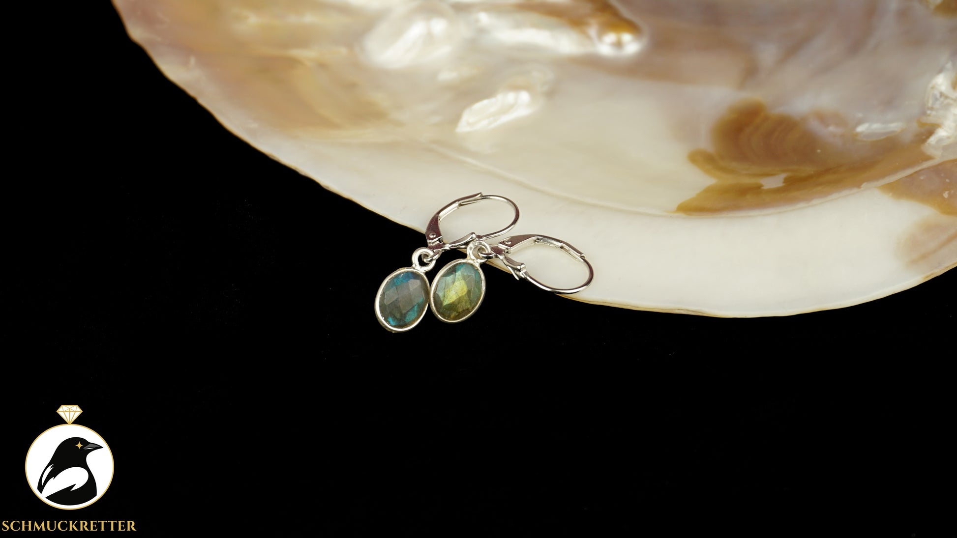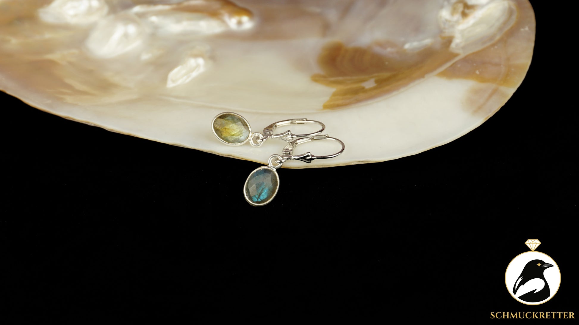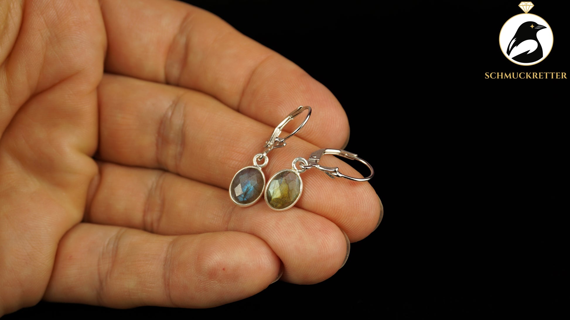 Zusätzliche Infos: Jedes Paar hat einen eigenen Charakter – Farbe und Schimmer variieren leicht, die typische kräftige blaue Labradoreszenz bleibt erhalten.