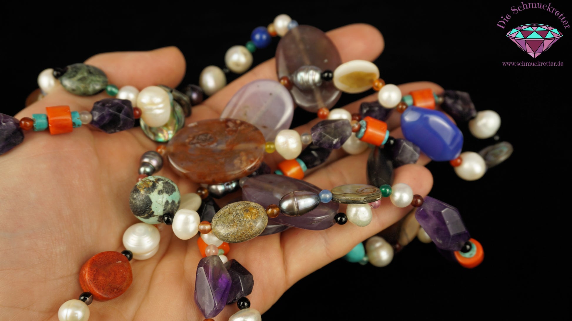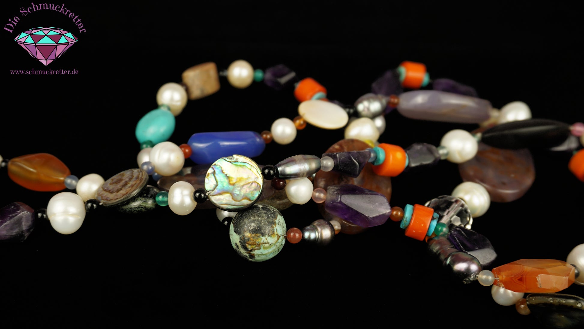 Zusätzliche Infos: Kein Verschluss vorhanden; mit Süßwasserperlen in verschiedenen Farben und Formen