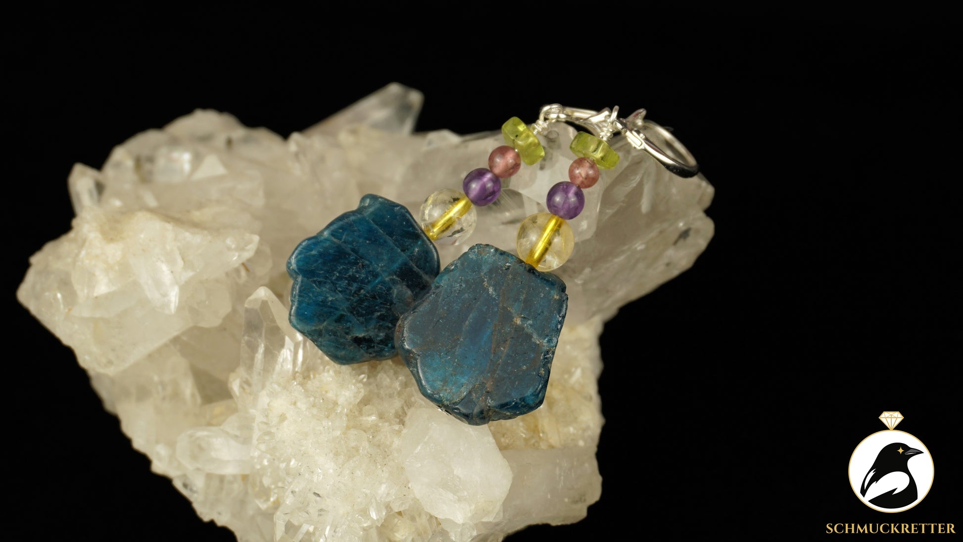 Ohrringe 'Tiefseetanz' aus 925 Silber - mit Apatit, Rutilquarz, Peridot, Turmalin, Amethyst