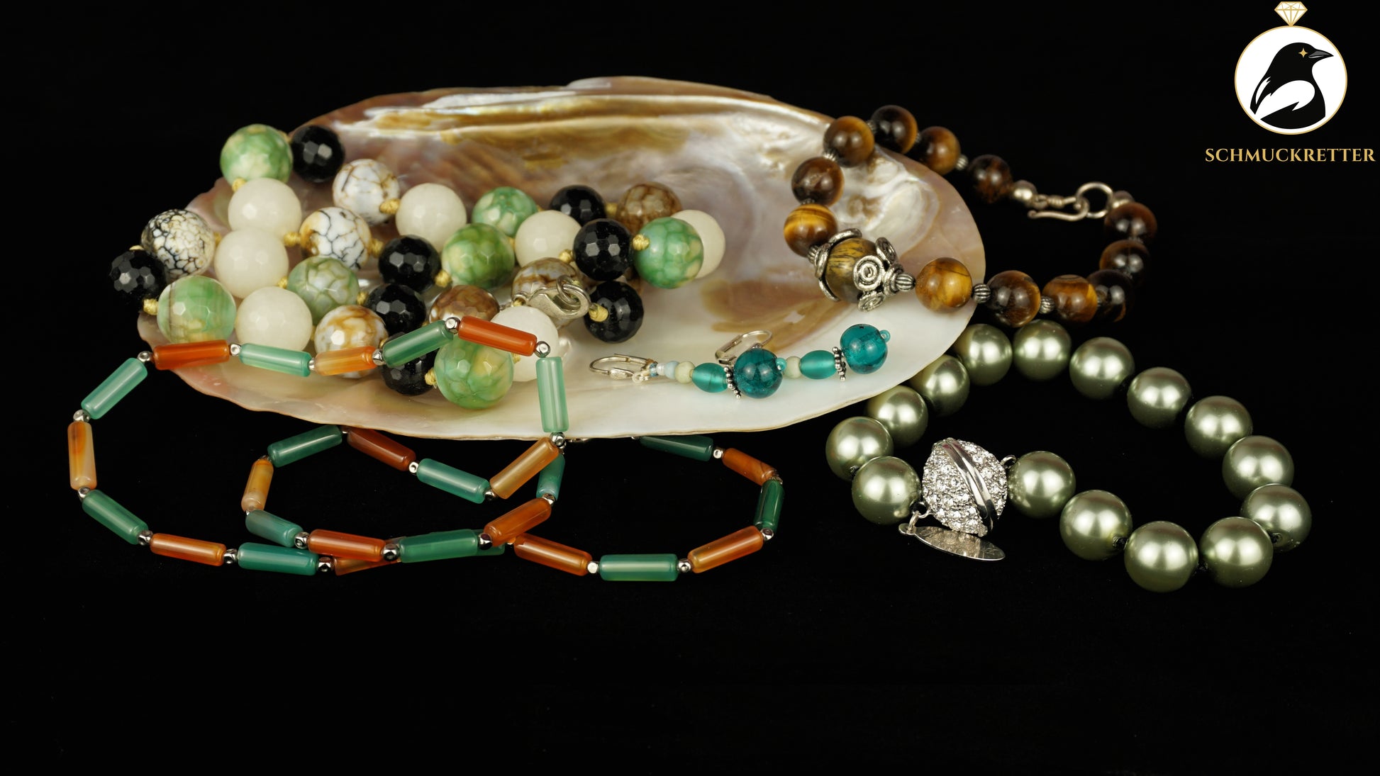 Schmuckretter Auswahl – Grüntöne, Braun & Perlenglanz